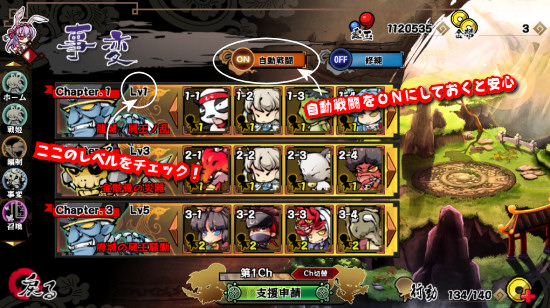 この画面で重要なのは、それぞれの事変Chapterの適正レベルです。
